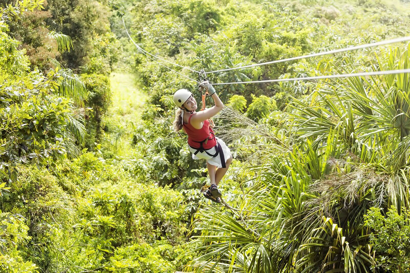 After enjoying your turn at the ziplines, you can enjoy fresh in-season fruits, light snacks, and drinks. You can also take a dip in a natural pool at a nearby waterfall, so it’s a good idea to bring a swimsuit.